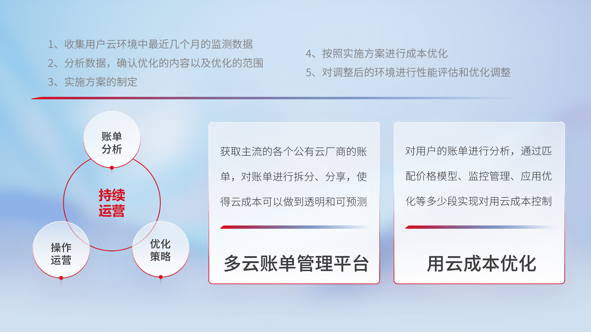 运用智能化工具分析云资源,,,提供日常费用可视化工具,,,自动账单拆分,,,,成本优化云上费用,,,,降本增效。。